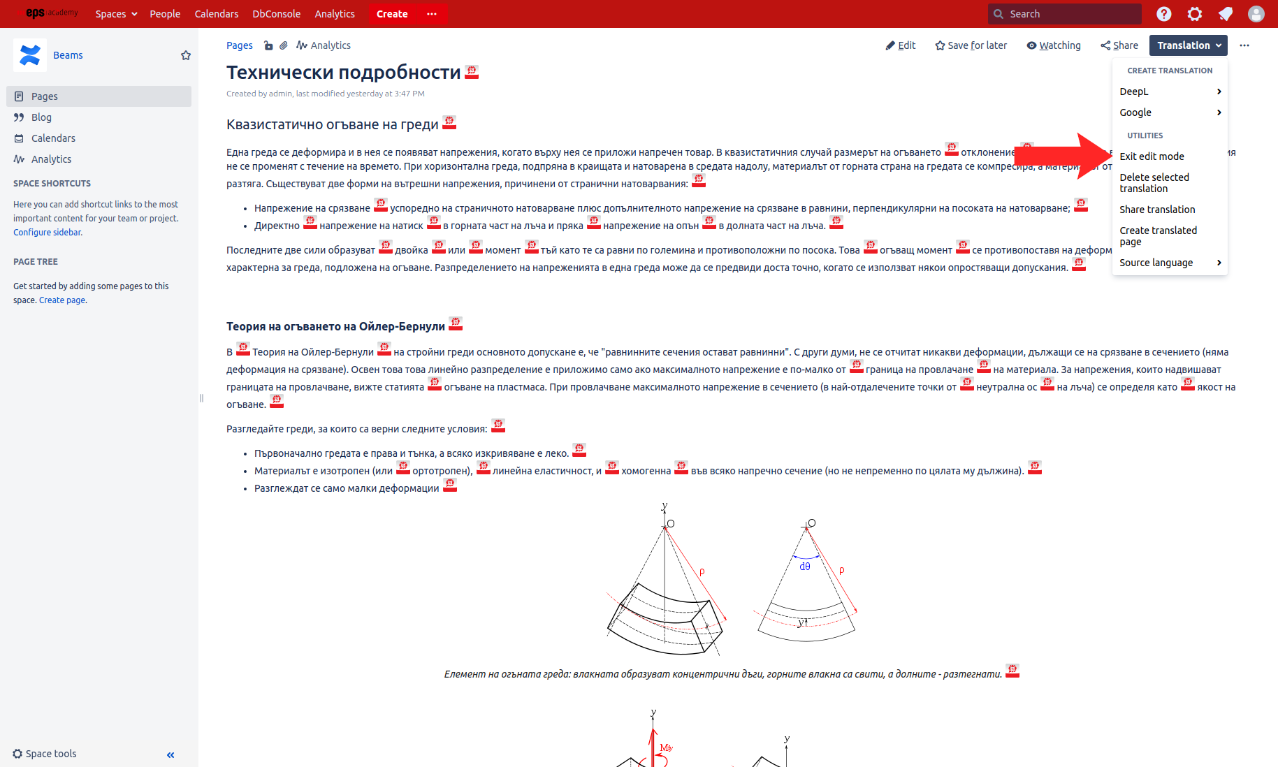 To exit edit mode again, click Exit edit mode in the Translation menu.
