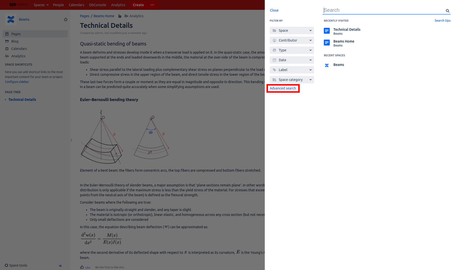 Navigate to the Confluence Advanced Search page. The basic URL looks like the following: