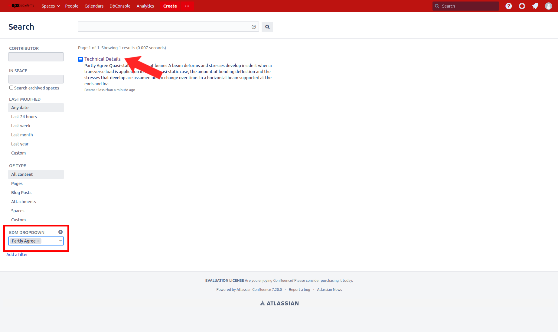 Now you can filter for values in the dropdown under the selected Macro (EdmDropdown or EdmStatus). After inserting a value you should see all pages that have this Macro with this value.